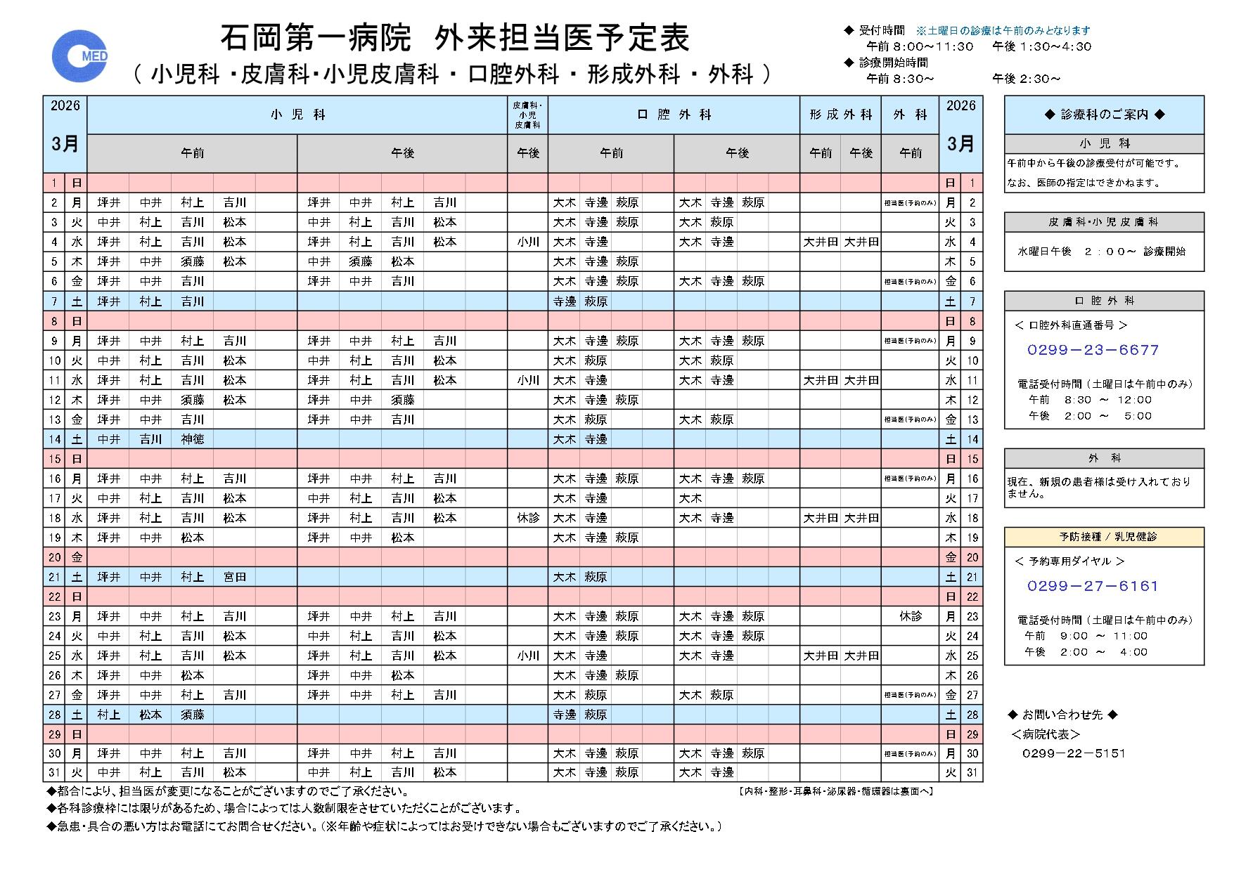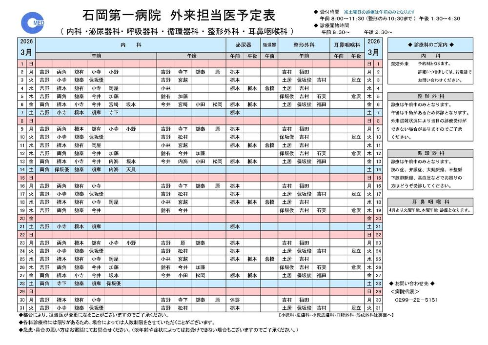 > 外来担当医表