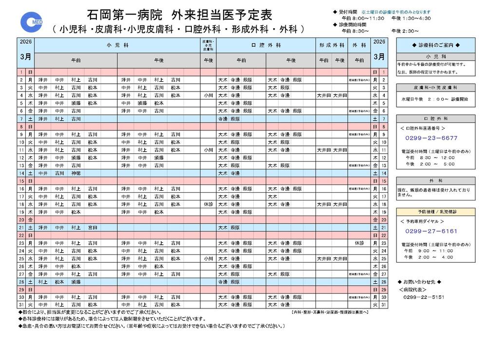 小児科・皮膚科・小児皮膚科・口腔外科・形成外科・外科